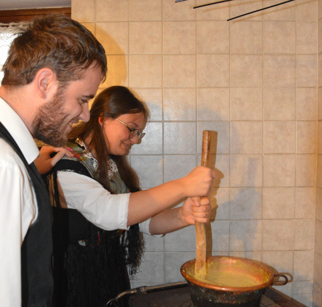 Ancora oggi in alcuni ristoranti della zona si mangia la polenta vera, quella cotta a lungo nel paiolo di rame, proprio come una volta. Un tempo (i nonni se lo ricordano!) non c’erano le pentole in acciaio inox oppure quelle anti- aderenti. Nei tegami in rame si cuocevano cibi semplici e genuini, come la polenta, che sfamavano le povere famiglie di quassù.