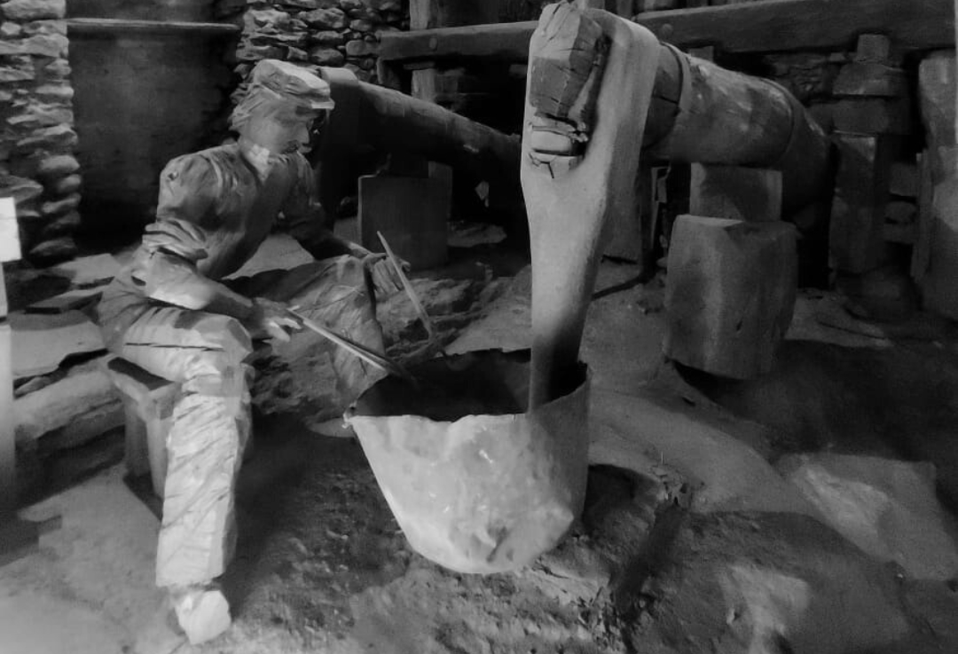 Eh sì, alla fine del 1600, precisamente il 1675, questa fucina, proprio come la vediamo oggi, è entrata in funzione. Ci lavoravano fonditori e mastri ramai, con compiti diversi e ben coordinati tra loro. Erano vestiti di tutto punto per non cuocersi davanti al grande forno.